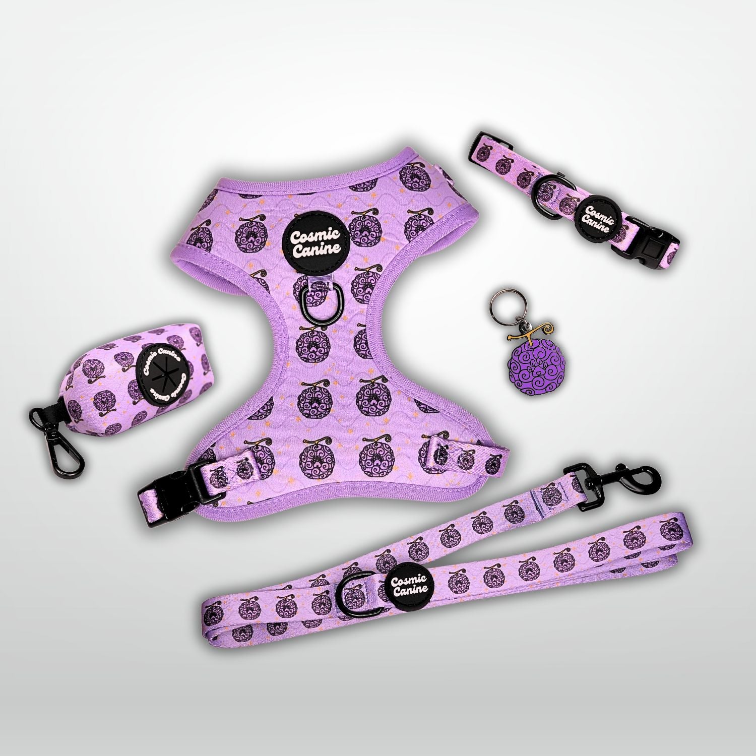 This design channels classic magical-girl aesthetics paired with playful canine charm. Soft pink tones evoke transformation and sparkle, reimagined through whimsical paw-shaped details, while bright yellow accents add warmth and energy. Bold and light-hearted, the piece brings a touch of animated magic and style to everyday dog accessories.